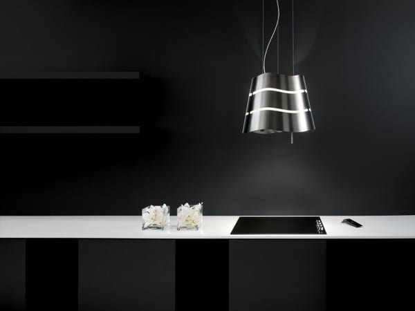 Ceiling-mounted products in the centre of the room equipped with a telescopic structure integrated within the chimney to connect them to the ceiling.
